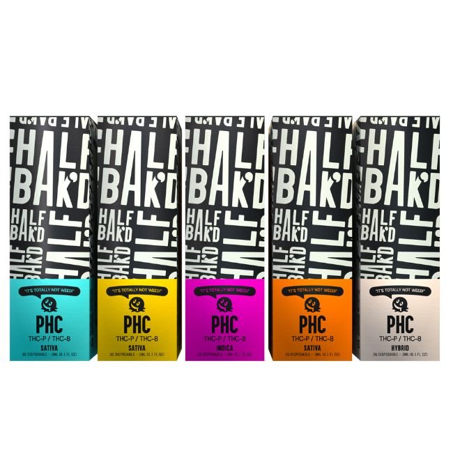 HALF BAK’D BY HAPPI (PHC-A+THC-P+/THC- D8) 3G DISPOSABLE 5CT/BOX
