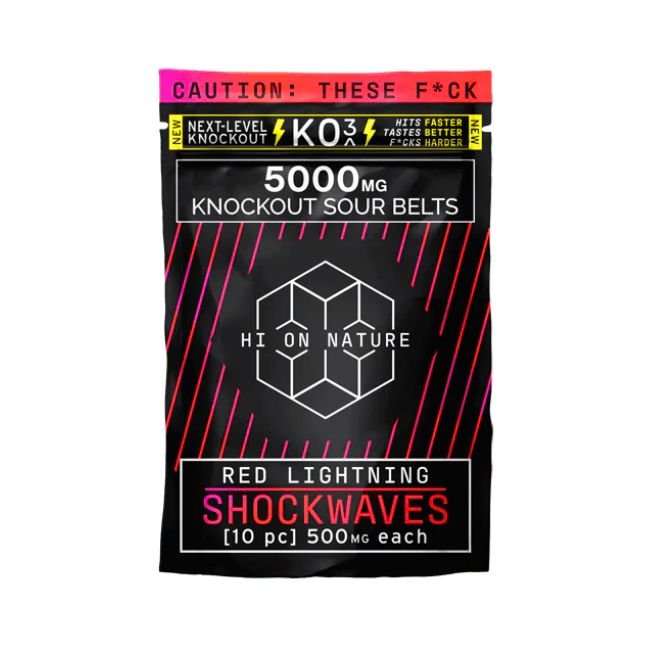 HI ON NATURE SHOCK WAVES KNOCKOUT-3 5000MG SOUR BELTS 10CT BAG