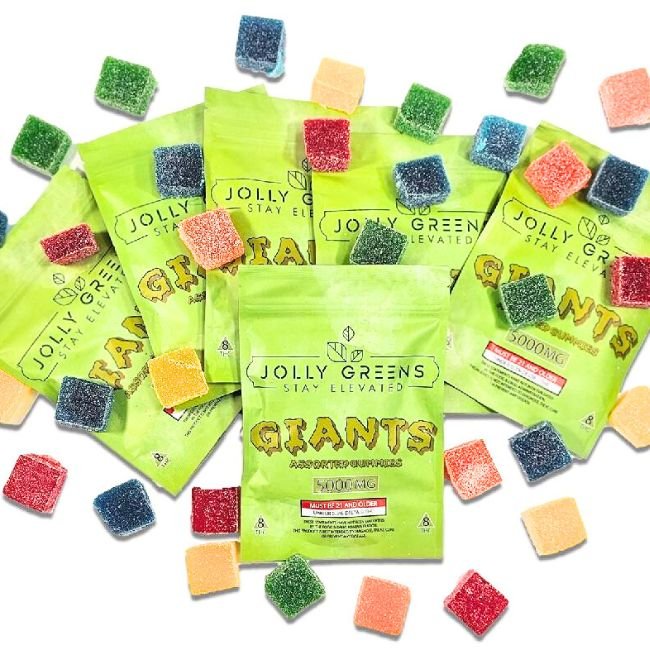 JOLLY GREEN DELTA 8 THC GIANTS 5000MG ASSORTED FLAVOR GUMMIES 5PC/BAG