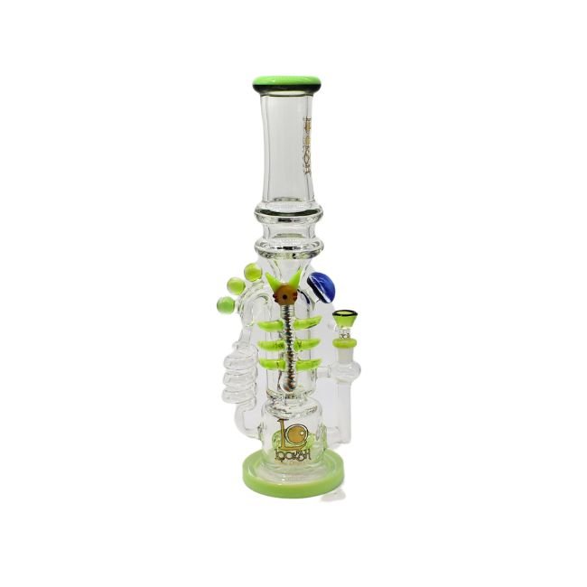 LOOKAH GLASS 16″ GREEN FANCY WITH RING DESIGN HEAVY DUTY WATER PIPE